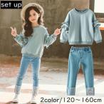 セットアップ 上下 2点セット キッズ ジュニア 女の子 子供服 トップス ボトムス トレーナー デニムパンツ 長袖 長ズボン ロングパンツ ラウンド