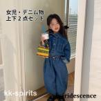 女の子 デニムジャケット デニムパンツ 上下セット 2点 キッズ デニムシャツ 長袖 Gパン 長ズボン 子供 女児 パンツセットアップ 春秋