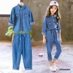 セットアップ 上下セット 上下2点セット 女の子 キッズ ガールズ ジュニア デニムシャツ デニムブラウス 長袖 デニムパンツ ロングパンツ カジュア