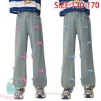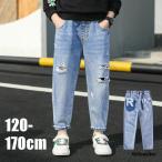 ロングパンツ 長ズボン キッズ ジュニア 男の子 女の子 子供用 ボトムス ウエストゴム ダメージ ロゴ プリント デニム風 おしゃれ かっこいい 楽