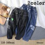 ロングパンツ 長ズボン デニムパンツ ジーパン 子供服 キッズ ジュニア 男の子 女の子 男女兼用 ボトムス ウエストゴム ポケット付き 単色 文字入