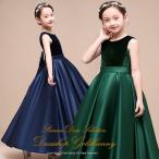 子供ドレス 豪華 上質タフタとベロアがエレガントなジュニアドレス 女の子 ロングドレス グリーン ネイビー