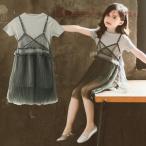 キッズワンピース セットアップ 韓国子供服 女の子 ワンピース 2点セット ジュニア 半袖ワンピース 夏 子供ドレス おしゃれ 通学着 110 120 130 140 150 160cm