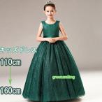 ピアノ発表会 ドレス 子供 女の子 ブラック グリーン 発表会ドレス ノースリーブ 子ども ワンピース お祝い日 演奏会 音楽会 フォーマル 誕生日 撮影