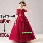ピアノ発表会 ドレス 中学生 ワンピース ジュニアドレス 七五三 キッズドレス ロング 子供ドレス ワインレッド お姫様 上品 可愛い エレガント シフォン 女の子