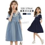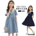 【特価】ワンピース女の子女児セーラー服海軍風ドレスセーラーワンピースキッズガールズ子供服半袖襟付き制服夏物ジュニア親子ペア薄手