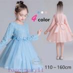 ワンピース キッズ 長袖ワンピース 子供服 女の子 秋 冬 ロングワンピース 蝶結び リボン 子供ドレス ジュニア フレア おしゃれ 可愛い