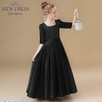 ピアノ発表会 ドレス キッズ キッズドレス ワンピース ロングドレス ジュニアドレス ロング丈 子供ドレス 五分袖 黒