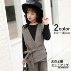 セットアップ 3点セット 上下セット キッズ ジュニア 女の子 長袖カットソー 前開きベスト 9分丈パンツ トップス ボトムス 長袖シャツ ニット風