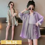 セットアップ キッズ 子供服 シャツ ハーフパンツ ストレッチ ワイドパンツ 上下セット 3点セット 長袖シャツ 夏 薄手 ゆったり ジュニア服 インナーTシャツ
