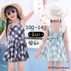 キッズ 水着 女の子 ワンピース セパレート ギンガムチェック 水遊び プール 海 ビーチ リゾート 100 110 120 130 140 バイカラー 黒 総柄