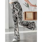 キッズ フレアパンツ マーブル柄 モノトーン 白黒 総柄 ウエストゴム パンツ ダンス 衣装 コスチューム ジュニア 子供服 女の子 120 130 140 150