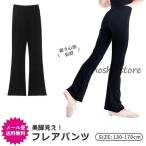 キッズ フレアパンツ ロング ジュニア 女の子 ブーツカット 脚長シルエット ブラック 黒 120 130 140 150 160 170 ダンス バレエ