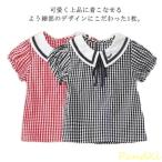 ブラウス 女の子 チェック柄 半袖 シャツ リポン ガールズ トップス 女児 子供服 可愛い 入学式 卒園式 通学 通園 通気性 夏物 ジュニア 送料