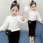 韓国子供服 トップス キッズ ベビー フォーマル 女の子 ガールズ ジュニア 長袖 ブラウス パフスリーブ レース刺繍 フリル おしゃれ 90-150