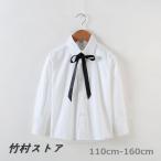 ガールズ 長袖シャツ ホワイト 可愛いリボン付き 120 ブラウス 白ブラウス キッズ Yシャツ 綿 110 コットン 白シャツ フォーマル ジュニア