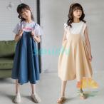子供 ブラウス 半袖 ジャンパースカート 2点セット 女の子 サロペット 夏 半袖ブラウス ガールズ カジュアルシャツ オーバーオール ジュニア シャツ