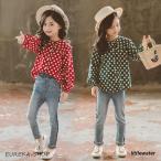 シャツ 長袖シャツ ブラウス キッズ ジュニア 女の子 赤 トップス 子供服 水玉 ドット ボタンシャツ 丸襟 可愛い おしゃれ ファッション