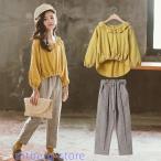 セットアップ キッズ 女の子 おしゃれ 韓国子供服 ジュニア ブラウス シャツ 無地 長ズボン 秋着 上下セット カジュアル