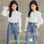 新作 長袖 シャツ キッズ フリル ブラウス 韓国 子供服 可愛い リボン 女の子 無地 トップス カジュアルシャツ ジュニア 春夏秋
