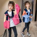 【大特価】女の子 子供服 ウインドブレーカー キッズ ジュニア ジャケット ブルゾン 長袖 ジップアップ フード付 配色 マウンテンパーカー ジャンパー