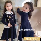 子供ドレス ベビー服 ニットワンピース 秋冬 襟付き 可愛い フレアワンピ 長袖 シンプル 七五三 フォーマル プレゼント 誕生日 入園式 入学式 90cm~140cm