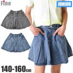 Fine プリーツスカート ミニ キッズ 夏 スカート デニム 綿100 韓国ファッション スカパン パンツ付き 小学生 ジュニア 女の子 140cm 150cm 160cm 送料無料