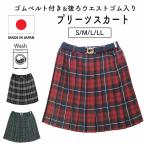 日本製 子供服 女の子 ジュニア プリーツスカート ゴム ベルト付 ブラック レッド グリーン 格子 12502 通年