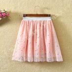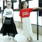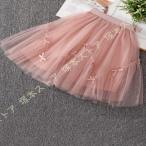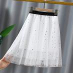 プリーツスカート チュールスカート メッシュ 女の子 キッズ ジュニア ガールズ ウエストゴム ロング丈 チュール 夏 無地 スカート ダンススカート ボトムス