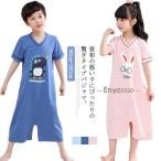 パジャマ 繋ぎ キッズ ジュニア 綿 半袖 春夏 薄手 Vネック 寝巻き 男の子 女の子 ネグリジェー プルオーバー カバーオール 寝冷え防