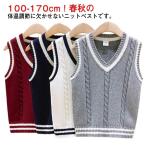 キッズ 子供服 ニットベスト フォーマルベスト ライン入り Vネック 学生 ニットトップス 男の子 女の子 男女兼用 ジュニア プルオーバー ニット