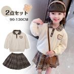 ジュニア 子供服 女の子 上下2点セット 綿 コットン 長袖プルオーバー+スカート ウェアセット 春着 長袖 パーカー 膝上丈 襟付き 学院風 普段着 かわいい