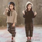 子供服 女の子 2点セット 長袖 パーカー トップス +チェック 長ズボン プルオーバー フード付き 子ども服春秋 キッズ用 学生服 ジュニア 上下 セット