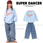 ダンス衣装 キッズ トップス ヒップホップ 衣装 キッズダンス衣装 セットアップ 男の子 ガールズ 派手 プルオーバー K-POP HIPHOP 韓国 水色 デニム