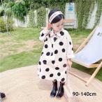 女の子 ワンピース 春 秋 長袖 シャツ 子供服 ドット 水玉 襟 ガールズ ジュニア かわいい おしゃれ 韓国子供服 ポルカドットシャツワンピース W023