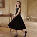 ドレス 子供 ピアノ発表会 演奏会 ブラック 黒 結婚式 女の子 ジュニア 120 130 140 150 160 フォーマル ワンピース コンクール ノースリーブ ミモレ丈 ロング
