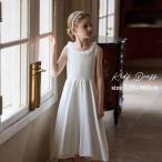 ドレス 子供 ピアノ発表会 演奏会 ホワイト 白 シンプル 結婚式 女の子 ジュニア 120 130 140 150 160 フォーマル ワンピース コンクール ノースリーブ ミモレ丈