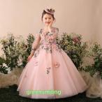 子ども ドレス お呼ばれ/ピアノ発表会 高級感 豪華 ロングドレス キッズ ジュニア 子供 ドレス 結婚式 演奏会 音楽会 七五三 ドレス フォーマルドレス リングガール ドレス 花柄 刺繍 チュールスカート ワンピース フラワーガール 女の子 撮影 司会者 春夏秋冬 100-160CM上品