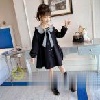 ワンピース キッズ 長袖ワンピース 子供服 女の子 秋 冬 レースワンピース 折り襟 チュール 子供ドレス ジュニア フレア おしゃれ 可愛い カジュアル 新品 150