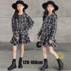 ワンピース キッズ 長袖ワンピース 子供服 女の子 秋 冬 シャツワンピース フリル ストライプ 子供ドレス ジュニア フレア おしゃれ 可愛い カジュアル 新品 90
