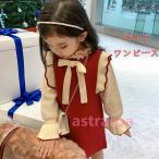 ワンピース キッズ 長袖ワンピース 子供服 女の子 秋 冬 ロングワンピース 蝶結び リボン 子供ドレス ジュニア フレア おしゃれ 可愛い カジュアル 新品 150 160