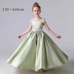 子供ドレス 発表会ドレス ワンピース ジュニア 女の子 ロング コンクール ドレス 結婚式 キッズ 160 150 140 こども フォーマル グリーン