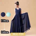 ピアノ発表会 ドレス 中学生 ワンピース ジュニアドレス 七五三 ロング丈 子供ドレス ネイビー バイオリン ピアノコンクール 披露宴 お姫様 着やせ 上品 エレガ