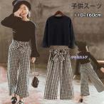 女の子 セットアップ 春秋 長袖Tシャツ チェック柄 パンツ 上下セット 子供服 フォーマル 韓国風 入学式 パンツスーツ ガールズ 子供服 卒業式 結婚式 発表会