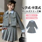 子供 スーツ セットアップ 上下セット 2点 ツイード風 重ね着風 カジュアル ジュニア フォーマル ストライプ 韓国服 ポケット ダンス ファッション プリーツ