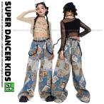 キッズダンス衣装 セットアップ ヒップホップ 衣装 総柄シャツ クラッシュデニム 子供ダンス服 ダンスウェア ダンス衣装 キッズ K-POP