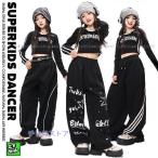 ガールズ ヒップホップ 衣装 黒 ブラック K-POP 韓国 セットアップ 子供ダンス服 ダンスウェア へそ出し トップス パンツ キッズダンス衣装