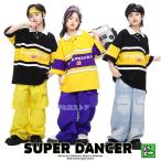 ヒップホップ 衣装 キッズダンス衣装 セットアップ K-POP 韓国 子供ダンス服 派手 hiphop 男の子 ガールズ ラガーシャツ パンツ 黒 黄色 紫