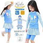ラッシュガードセパレート水着キッズジュニア女の子長袖フードなしスカート付きレギンス水泳帽子3点セット子供UV紫外線カット