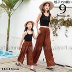 ロングパンツ 子供服 女の子 キッズ ジュニア レディース ボトムス 長ズボン ワイド ウエストゴム 親子コーデ お揃い ペアルック 花柄 ストライプ